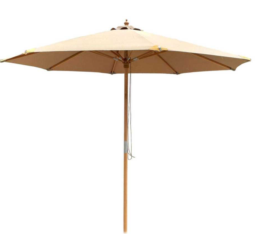 Denne parasol kombinerer funktionalitet med et klassisk og stilrent design. Den er fremstillet med en 2-delt stang i 48 mm hårdt bøgetræ, som giver en solid konstruktion og samtidig gør den nem at skille ad og opbevare.